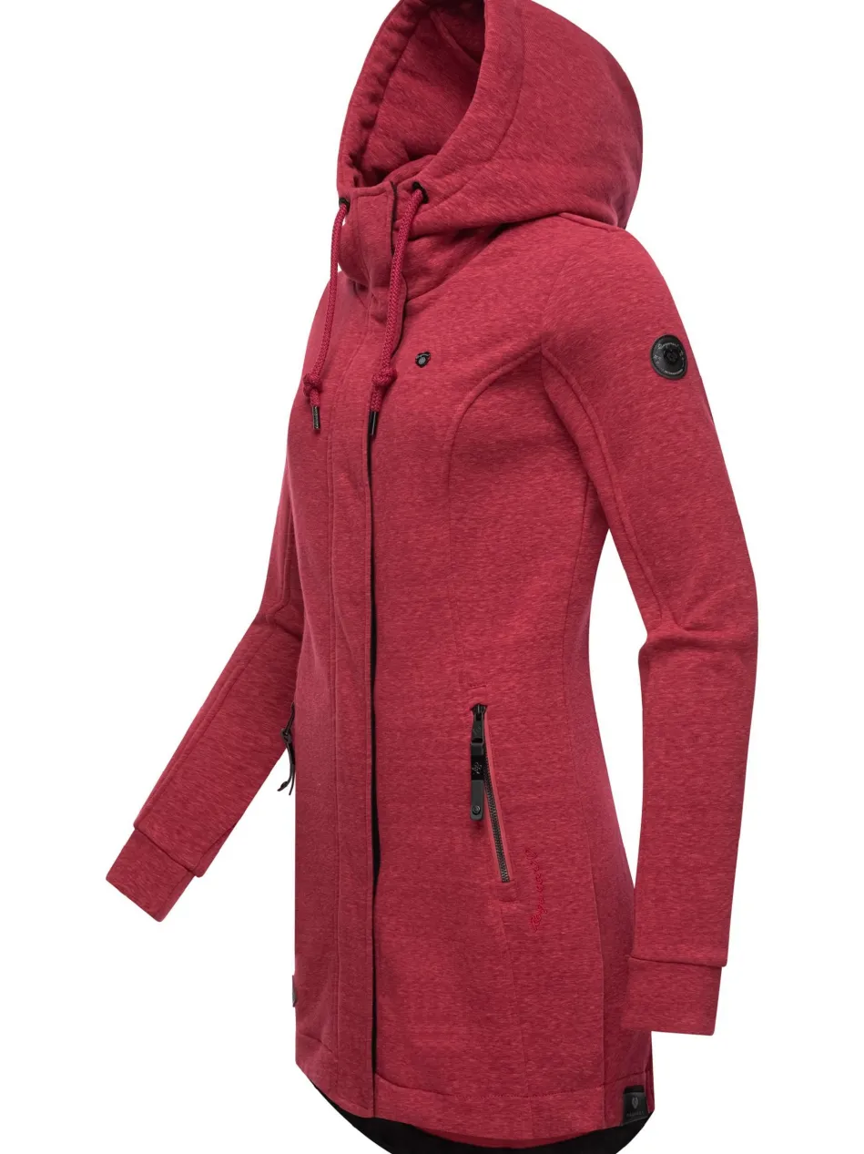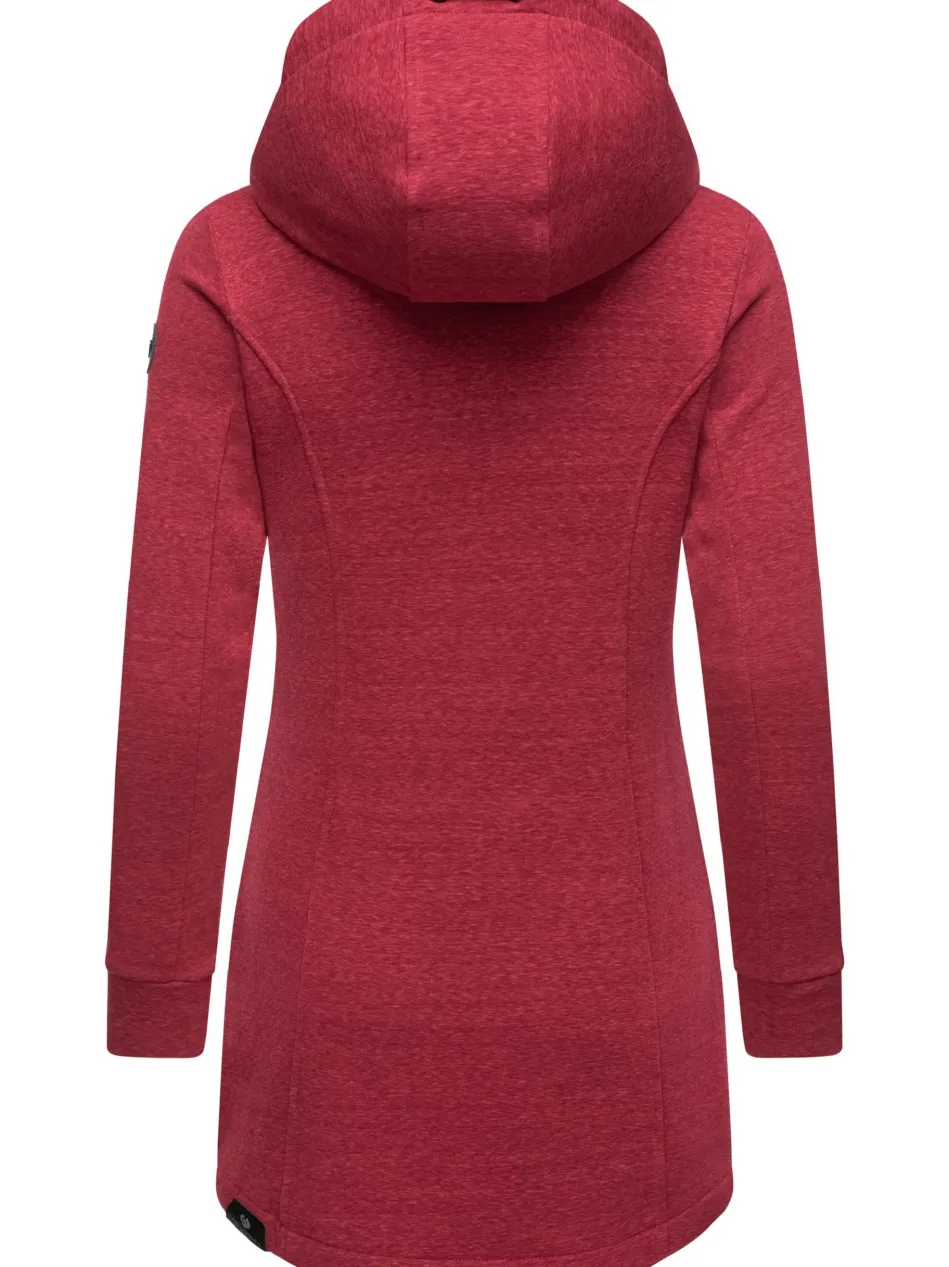 Moderner Damen Übergangsmantel mit gemütlicher Kapuze von Ragwear vereint die lässige Ausstrahlung einer Kapuzensweatjacke mit dem eleganten Touch eines Kurzmantels – perfekt für die Übergangszeit und als zusätzliche Schicht im Winter.