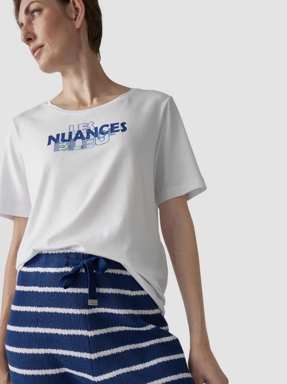 Dieses T-Shirt setzt stilvolle Akzente mit seinem modernen Schriftzug und funkelnden Glitzersteinen. Ein vielseitiges Basic, das sich ideal für modische Alltagsoutfits eignet – bequem, feminin und mit besonderem Eyecatcher-Effekt.Hochwertige Jersey-Qualität mit weichem Griff.Moderner Frontprint mit glitzernden Details.Klassischer Rundhalsausschnitt für hohen Tragekomfort.Leicht taillierte Passform für eine feminine Silhouette.Ideal kombinierbar mit Jeans, Röcken oder unter Blazern.