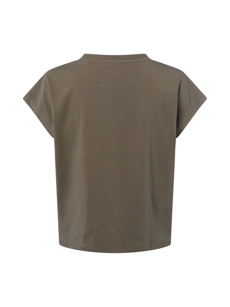 Das boxy Jerseyshirt Sekundi von Opus mit drapierten Falten an den Ärmeln versprüht Streetwear Vibes pur.