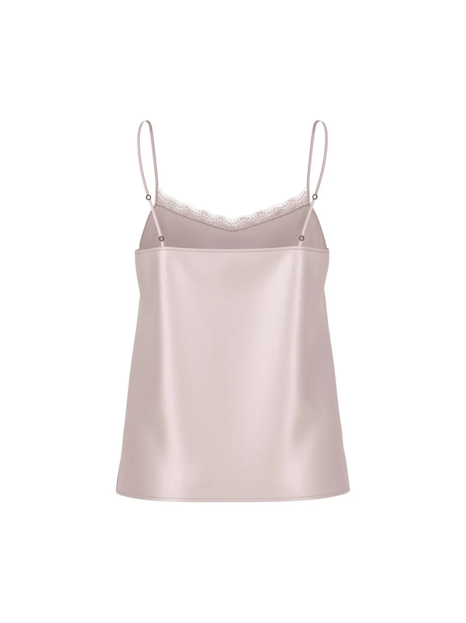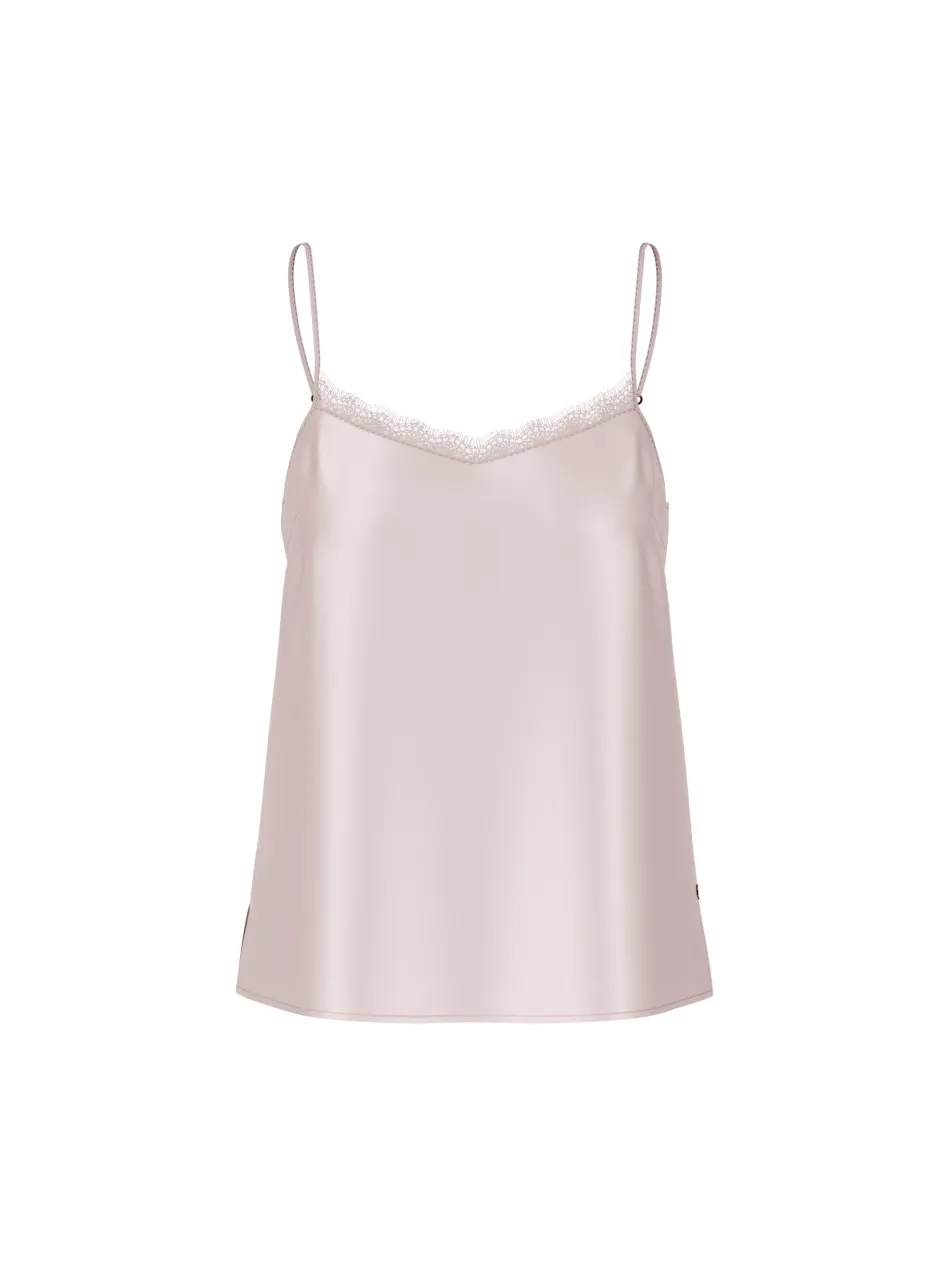 Mit seiner edlen Seide schmeichelt dieses zarte Top der Haut. Eyecatcher ist der Spitzeneinsatz am V-Neck. Feine Träger, die individuell verstellbar sind, ergänzen den femininen Stil. Das Top besitzt Brustabnäher und präsentiert eine leichte A-Silhouette.