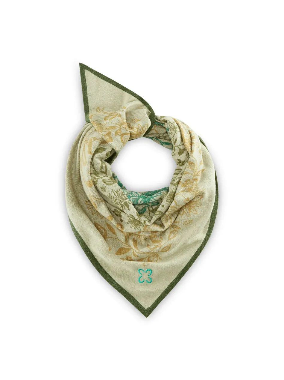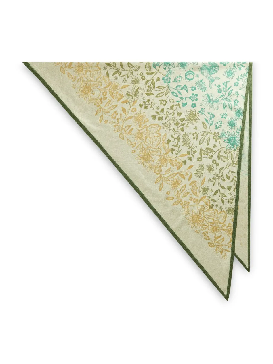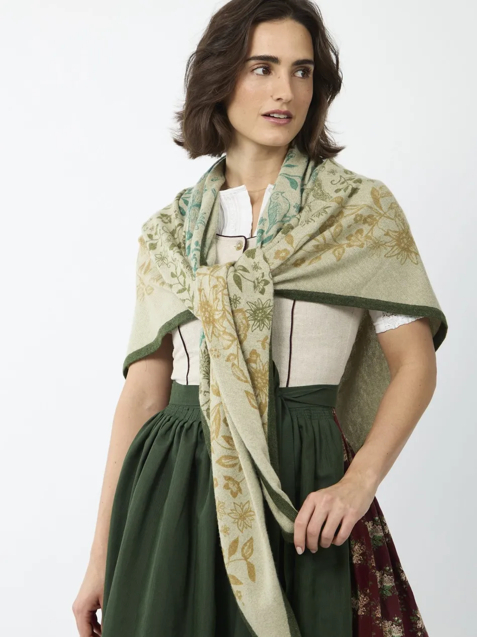Dieses exklusive Triangle-Tuch aus kaschmirweichem Edel-Strick sieht auch als Trachten-Accessoire zum Dirndl und Janker super aus. Im Alltag gefällt es uns lässig zu Jeans- oder Lederjacken kombiniert besonders gut. Das Dreieckstuch ist mit einem handgedruckten Blumen-Motiv aus unserer wertvollen #11 CASHMERE FEELING gefertigt. Hierbei handelt es sich um eine hochwertige Mischung aus Wolle, Kaschmir, Viskose und Polyamid, die mit einem wunderbar weichen Griff und einer edlen Optik überzeugt.