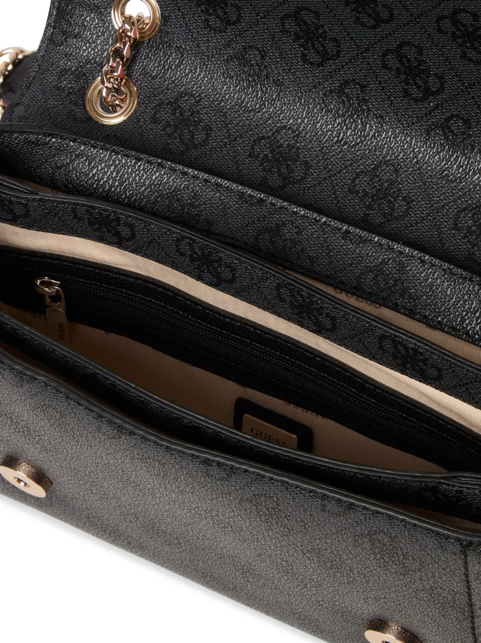 Die Crossbody Bag Noelle von GUESS zeigt sich im Label-Design mit variablem Kettenschulterriemen für verschiedene Tragemöglichkeiten.