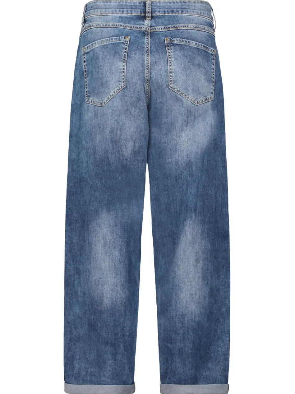 Diese Used Look-Jeans überzeugt mit einer lockeren Passform und einem leichten Stoff, der für besonders angenehmen Tragekomfort sorgt. Das modische Bunddetail und die coole Used-Waschung verleihen der Jeans einen entspannten, modernen Look. Im Loose Fit ud mit Mid Waist Schnitt sitzt sie bequem und lässig, während der Reißverschluss und die 5-Pocket-Details den klassischen Jeans-Stil unterstreichen. Perfekt für die Freizeit!
