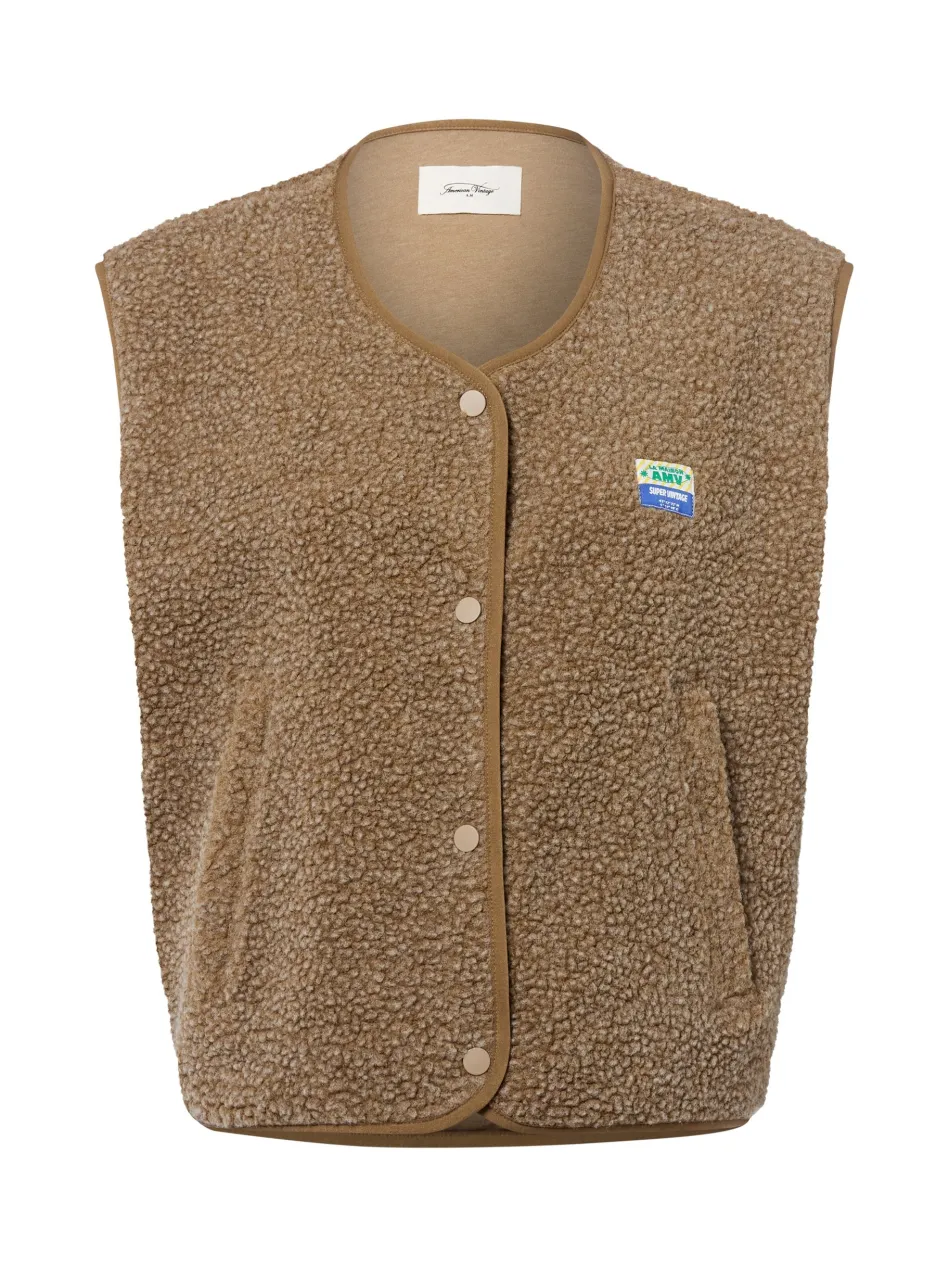 Ein unfassbar cooles Layering-Piece: Die boxy geschnittene Weste Hoktown von american vintage aus Teddy-Fur lässt sich extrem vielseitig kombinieren.