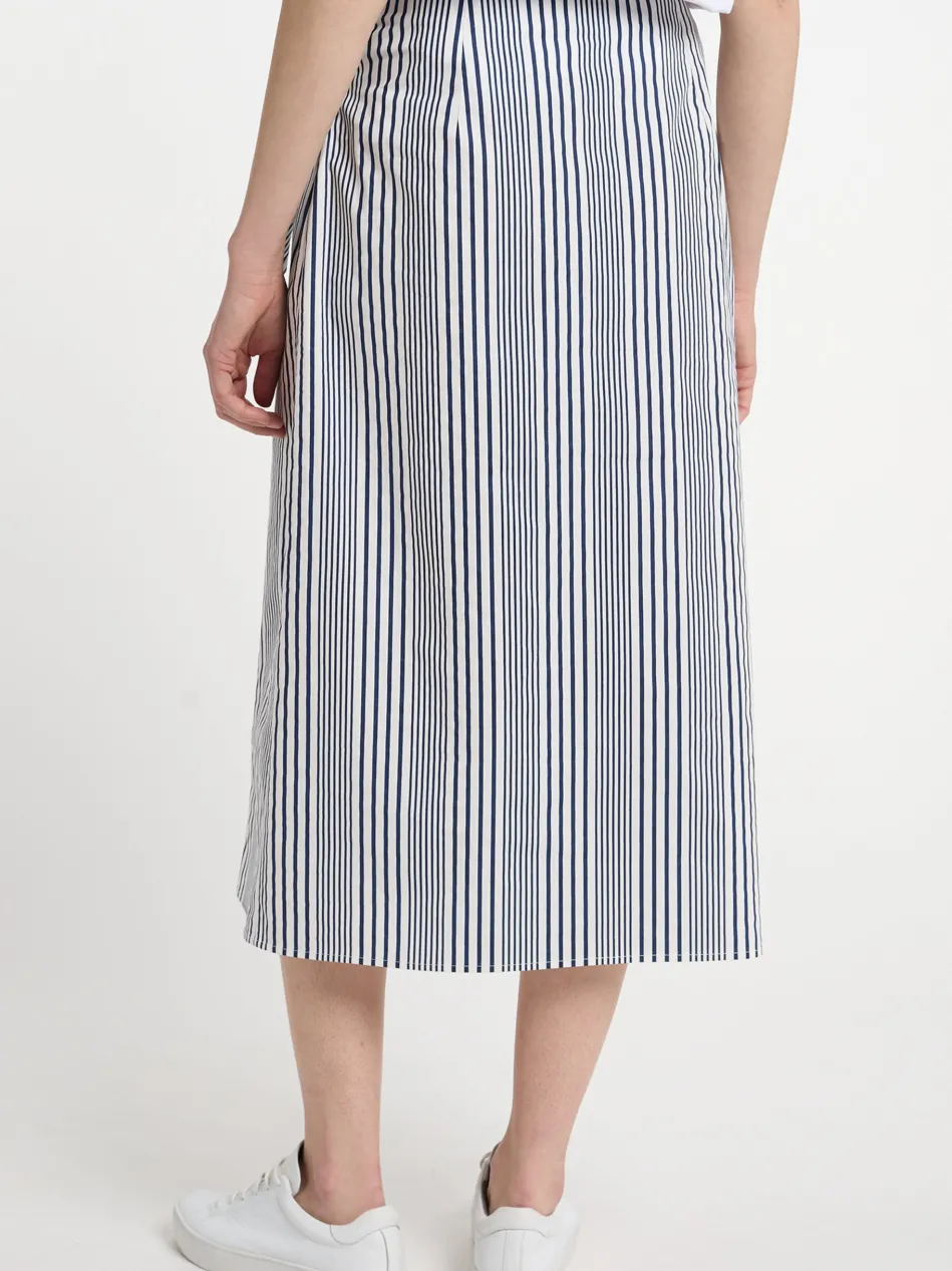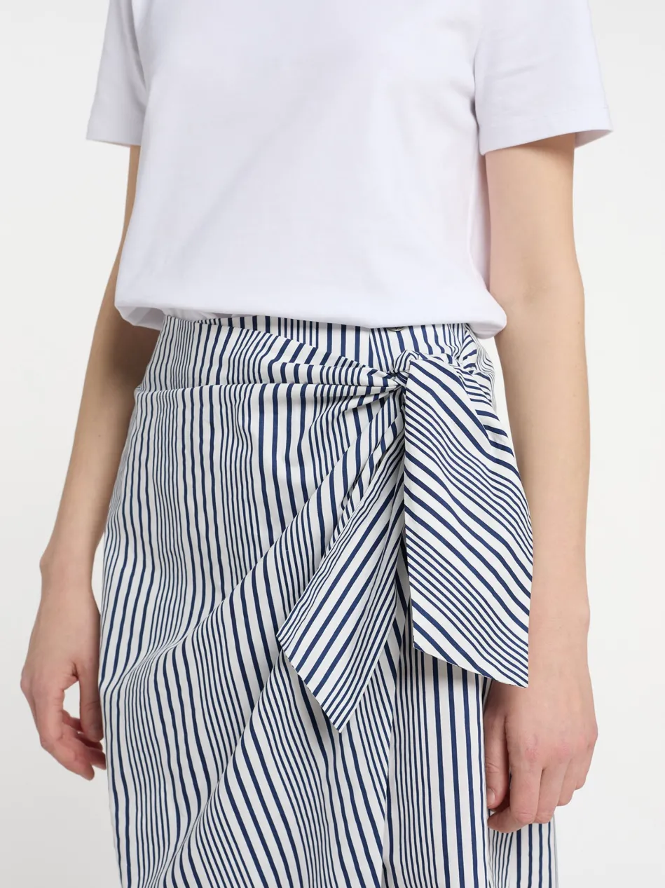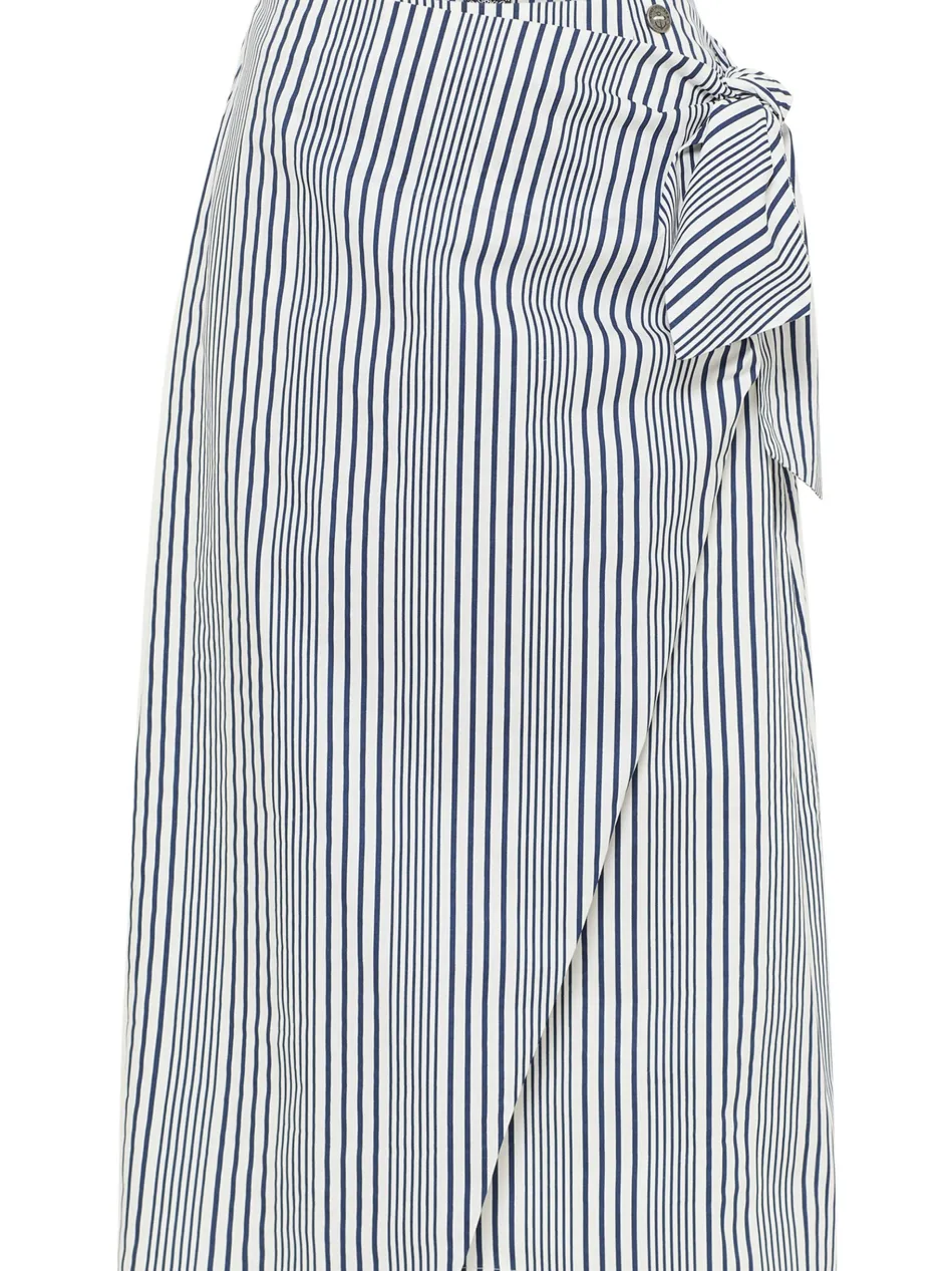 Der maritime Streifenlook, dazu eine raffinierte asymmetrische Silhouette mit Schleifendetail an der Taille und ein weiches Baumwollmaterial machen diesen wadenlangen Wickelrock von DreiMaster Maritim zum perfekten Sommerrock. Kombiniert mit T-Shirt, Sandalen oder Sneakern sitzen wir gedanklich unter Sonnenschirmen oder flanieren die Strandpromenade entlang.