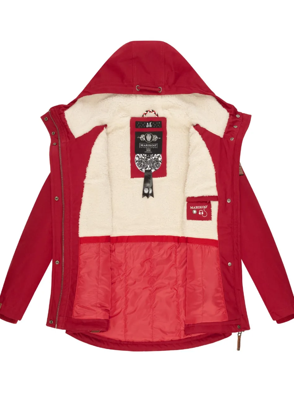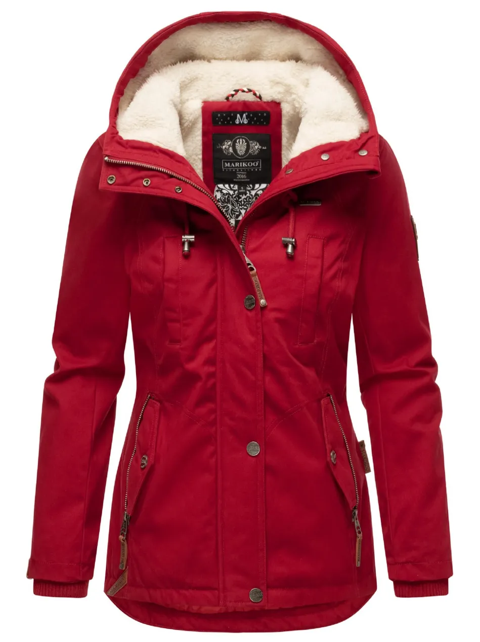 Stylischer Damen Winterparka von Marikoo mit großer Kapuze, Klappentaschen und flauschigem Teddyfell Innenfutter – ein echter Allrounder für die kalte Jahreszeit (Herbst und Winter)!
