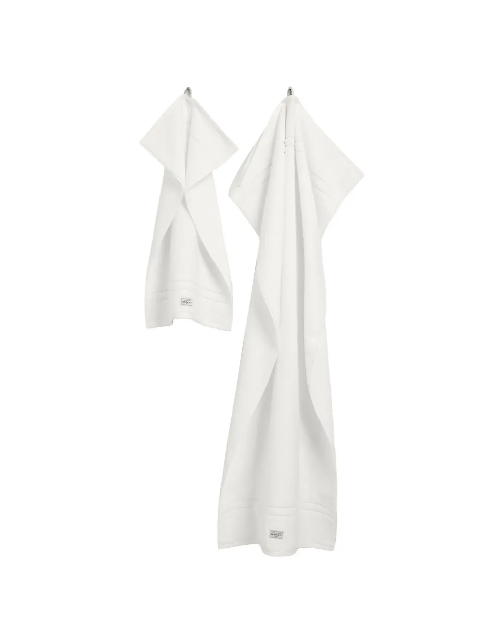 Einfarbiges Handtuch-Set von der Marke GANT. Bestehend aus 2 Handtüchern 50x70cm und 2 Duschtüchern 70x140cm. Aus 100% reiner Bio-Baumwolle.